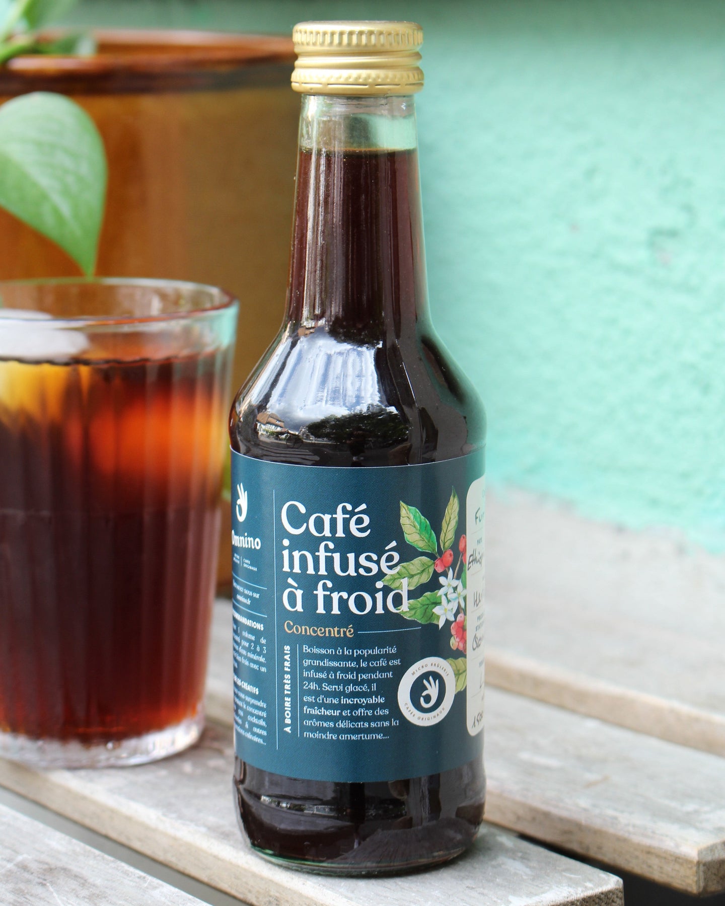 Nous en proposons une version concentrée pour toujours plus de rafraichissement. Avec 25cl de café infusé à froid concentré, vous obtenez 75cl de boisson prête-à-boire.